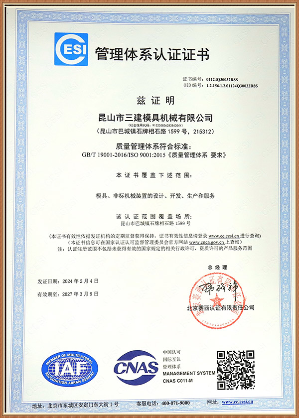 昆山市三建模具機(jī)械有限公司 創(chuàng)建于1996年,是一家研發(fā)生產(chǎn)電冰箱模具(電冰箱門、箱真空成型吸塑模、沖孔切邊模、 發(fā)泡內(nèi)外夾具、沖壓模具)產(chǎn)品并提供成套專業(yè)化控制解決方案的企業(yè)。 公司位于昆山市經(jīng)濟(jì)技術(shù)開發(fā)區(qū)石牌工業(yè)配套區(qū),交通便利。公司占地面積3.3萬(wàn)平方米,建筑面積1.2萬(wàn)余平方米,固定資產(chǎn)達(dá)5000萬(wàn)元。 公司已通過(guò)ISO 9001:2008認(rèn)證。 公司現(xiàn)有員工120人,各類專業(yè)技術(shù)人員35人。擁有蘇州市級(jí)企業(yè)技術(shù)中心和省級(jí)工程技術(shù)研究中心,擁有優(yōu)良的專業(yè)化研發(fā)團(tuán)隊(duì)和自主知識(shí)產(chǎn)權(quán)。 公 司擁有完善的銷售網(wǎng)絡(luò),產(chǎn)品80%以上出口,銷往全球10多個(gè)國(guó)家和地區(qū)。主要客戶品牌如三星、松下、日立、東芝、夏普、三菱、三洋、星崎、LG、伊萊克斯、惠而浦等。 公司旗下?lián)碛刑K州...